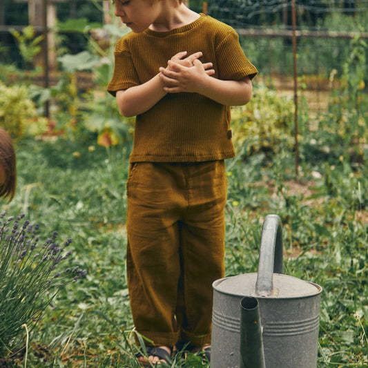 Baby pants with waistband, Merino wool fleece, Walnuss